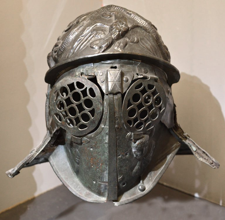 Почти наверняка, в правой поднятой руке он держал копьё, а в левой паразониум или другой короткий клинок.