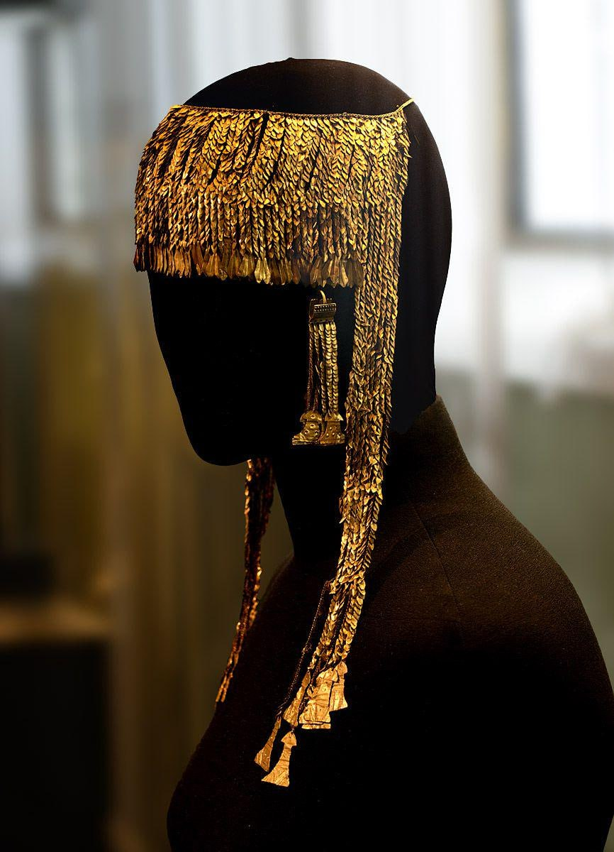 Была найдена в 1837 году Генрихом Шлиманом в Турции откуда была незаконно вывезена в Афины. Шлиман, страстный обожатель Эллады, желал, чтобы сокровище осталось в Греции и даже был готов возвести музей на свои средства, однако Греция отказалась от сокровища. После этого Шлиман безуспешно пытался продать клад другим мировым музеям. В итоге клад был подарен Германии. До мая 1945 года украшение находилось в Берлине, откуда вместе с другими артефактами из клада было вывезено советской комендатурой. После этого сокровища хранились в СССР в режиме секретности, и лишь в 1993 году Москва объявила, что сокровища Трои находятся в России.