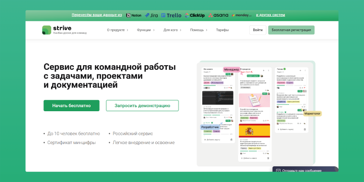 Интеграция с Telegram, Trello, Jira и другими сервисами.