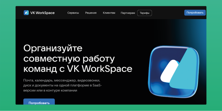 VK WorkSpace — коммуникационная платформа для бизнеса с корпоративной почтой, мессенджером, видеоконференциями и облачным хранилищем. Сервис поддерживает интеграцию с корпоративными системами безопасности и доступен как в облаке, так и для локального развертывания, что делает его универсальным решением.