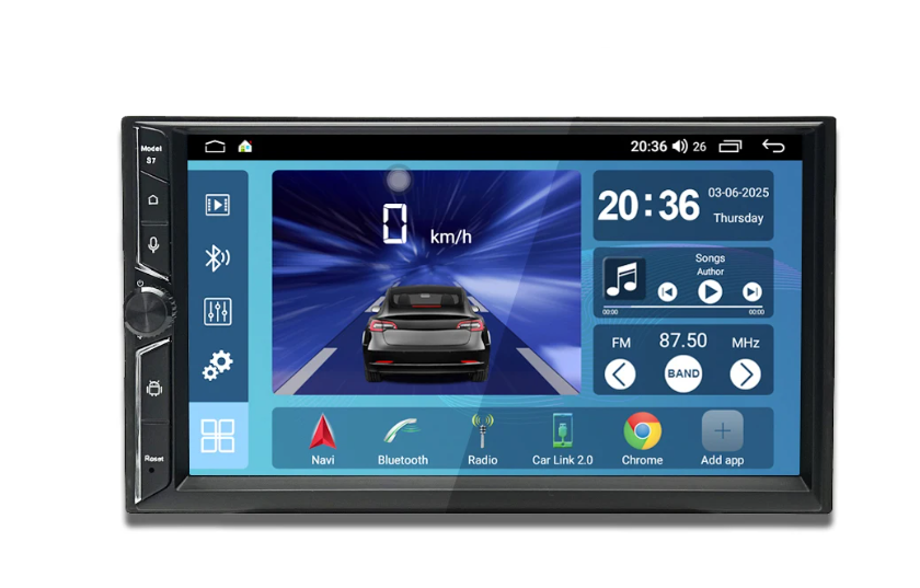 Мультимедийная система объединяет функции навигатора, медиаплеера и центра управления автомобилем. Экран диагональю 7 дюймов работает на базе Android, поддерживает GPS-навигацию, CarPlay, Bluetooth и Wi-Fi.