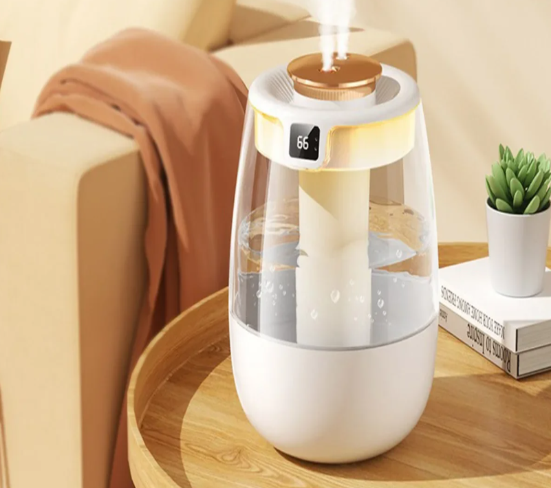 Управление простое: одной кнопкой можно включать и выключать прибор. Увлажнитель помогает бороться с сухостью воздуха, улучшает качество сна, снижает риск заболеваний дыхательных путей и предотвращает пересыхание кожи.
