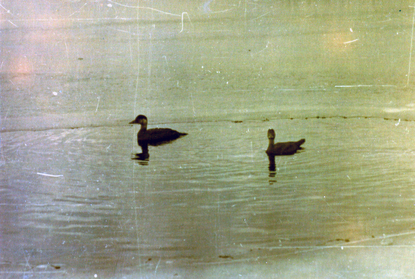 Ничто так не привлекает наше внимание, как следы человеческой деятельности, особенно если встречаешь их в десятках километров от ближайшего жилья. Конечно, я сразу же отправился исследовать свою находку. Уютно устроившиеся в ложбине дома сложно было назвать охотничьими, насколько хорошо они были срублены из толстенных брёвен. По давней традиции двери домов не были закрыты, а только припёрты поленом от зверья: открытая дверь в такой домик может спасти от смерти заплутавшего в тайге путника. Главное здесь – не пакостить и ничего не брать без особой нужды. Убранство дома не поражало воображение: пара нар, здоровенный сундук с припасами да стол, заваленный кипой журналов «Охота» и «Рыболов-спортсмен». В углу стояла небольшая каменная печка, а стену украшала здоровенная медвежья шкура. Осмотревшись, я вышел из дома и закрыл дверь, аккуратно приперев её поленом. Во второй дом решил не заходить, справедливо рассудив, что увижу там всё то же самое: всё-таки охотники и рыбаки редко обременяют себя каким-нибудь хозяйством. Перейдя через мыс, я очутился в южной части озера и поплёлся домой. Вдруг мне послышалось утиное кряканье, доносящееся из зарослей камыша. «Утки!» - обрадовался я. Не порыбачу, так хоть поохочусь! Сняв ружьё и зарядив его, я стал медленно красться по зарослям, стараясь не спугнуть добычу. А добыча, крякая, плавала в небольшой полынье на самом краю камышового поля. Я крался, крался, крался пока, наконец, не подобрался к уткам так близко, что впору было уже не стрелять, а бить их прикладом. Утки смотрели на меня во все свои утиные глаза, не делая ни малейшей попытки взлететь. Они спокойно попозировали, дав себя сфотографировать, и продолжили плавать в полынье. Плюнув. Я разрядил ружьё и отправился в лагерь: ну что это за охота, когда добыча от тебя убегать не хочет?