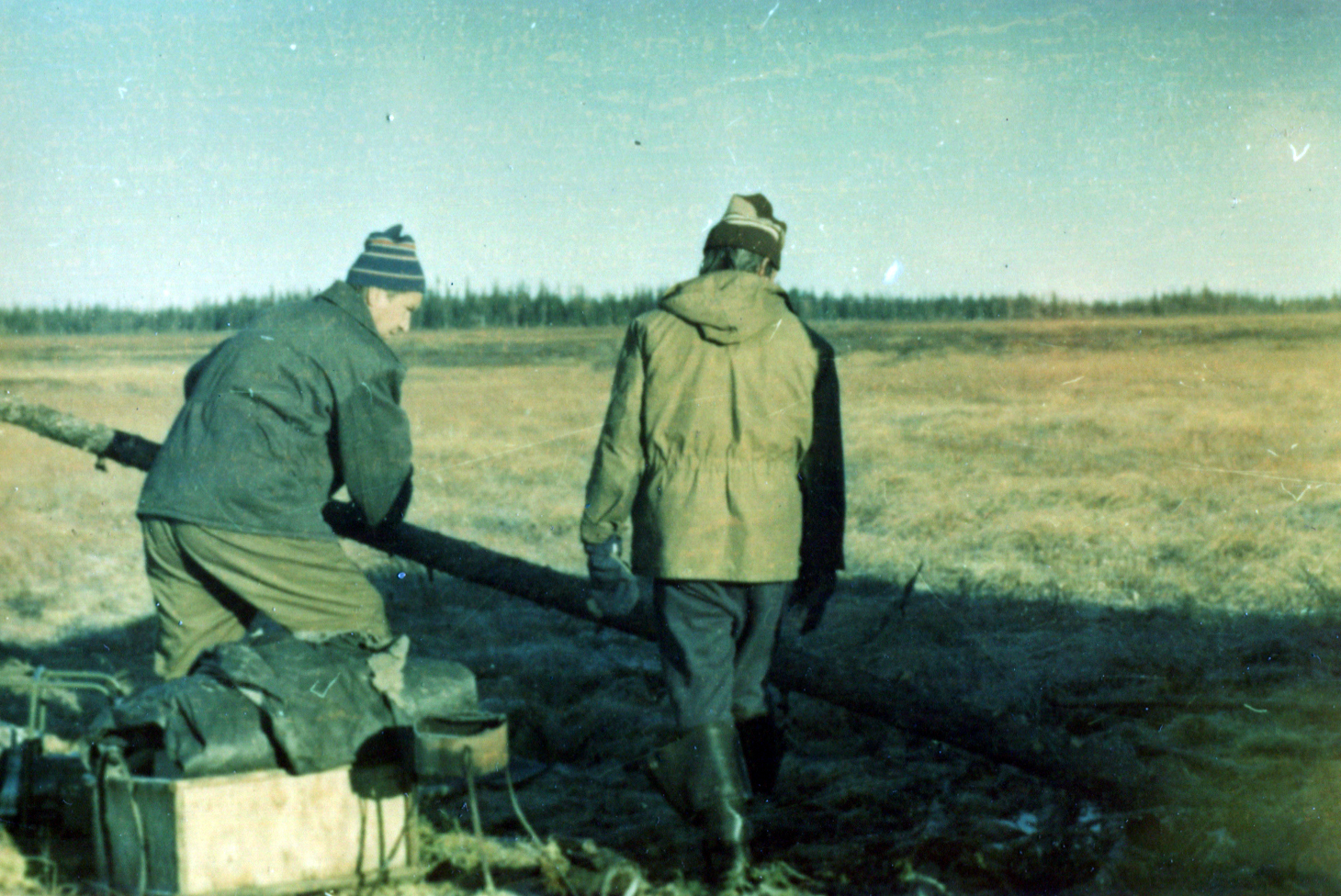 Но на этом наши неприятности не закончились. Обычно перелёт с точки на точку занимал у нас минут 5-7, но в этот раз мы летели явно дольше. Чертыхнувшись, Игорь снова убежал в кабину к пилотам. Там он увидел замечательную картину: штурман водил пальцем по карте, которую ему дал Игорь, так, будто это была не пятидесятка (карта масштаба 1:50000, очень точная и хорошая), а как минимум пятисотка – такими обычно пользуются пилоты. Как мог, сквозь шум мотора, Игорь сумел проорать капитану что они утащили наш балок чёрт знает куда, поэтому придётся возвращаться. Проорав извинения, капитан согласился вернуться на пару километров, поскольку горючего у них было впритык. Чуть-чуть вернувшись назад, Игорь с командиром выбрали более-менее подходящую поляну неподалёку от небольшой речки, после чего быстренько отстегнули балок, высадили нас и резво свинтили обратно в Нарьян-Мар.