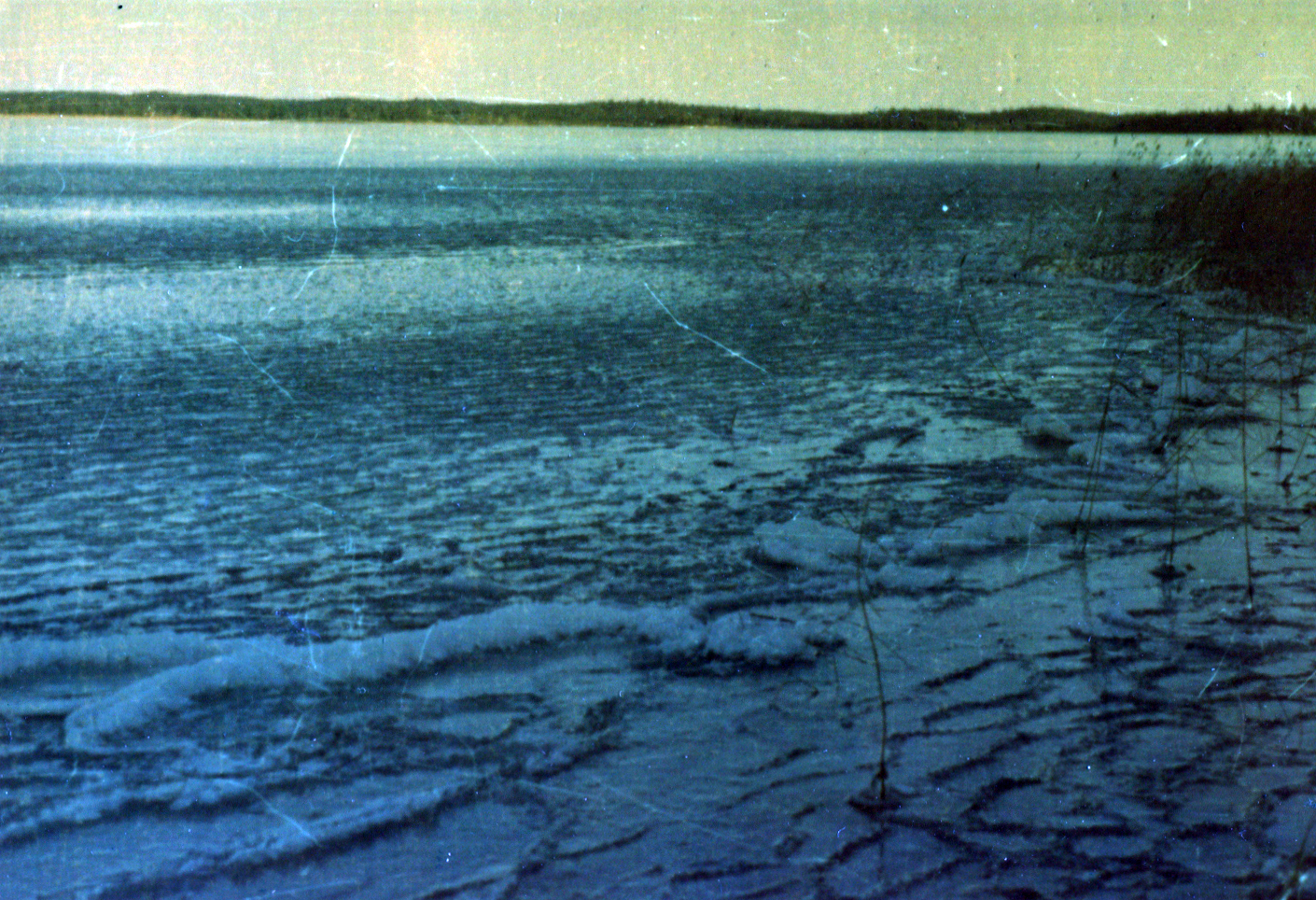 В первый же день я рванул на озеро, отпросившись у Игоря. Тот легко отпустил меня, посоветовав прихватить ещё и ружьё – наступило время перелётных птиц, так что на озере я запросто мог встретить стаю уток или гусей. Вооружившись ружьём и спиннингом, я отправился в путь. Под ногами похрустывал заиндевелый иней и жизнь моя была прекрасна и удивительна, как может быть только в 20 с хвостиком лет. Но вот я дошёл до озера и застыл в изумлении. На озере была рябь и даже волны, вот только застывшие. Всё озеро было покрыто молодой, но уже основательной коркой льда.