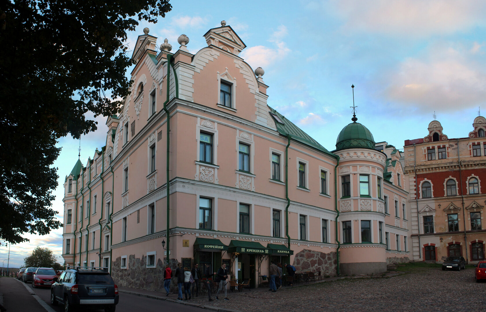 Тут находится ничем не примечательное внешне здание кинотеатра "Выборг-Палас".