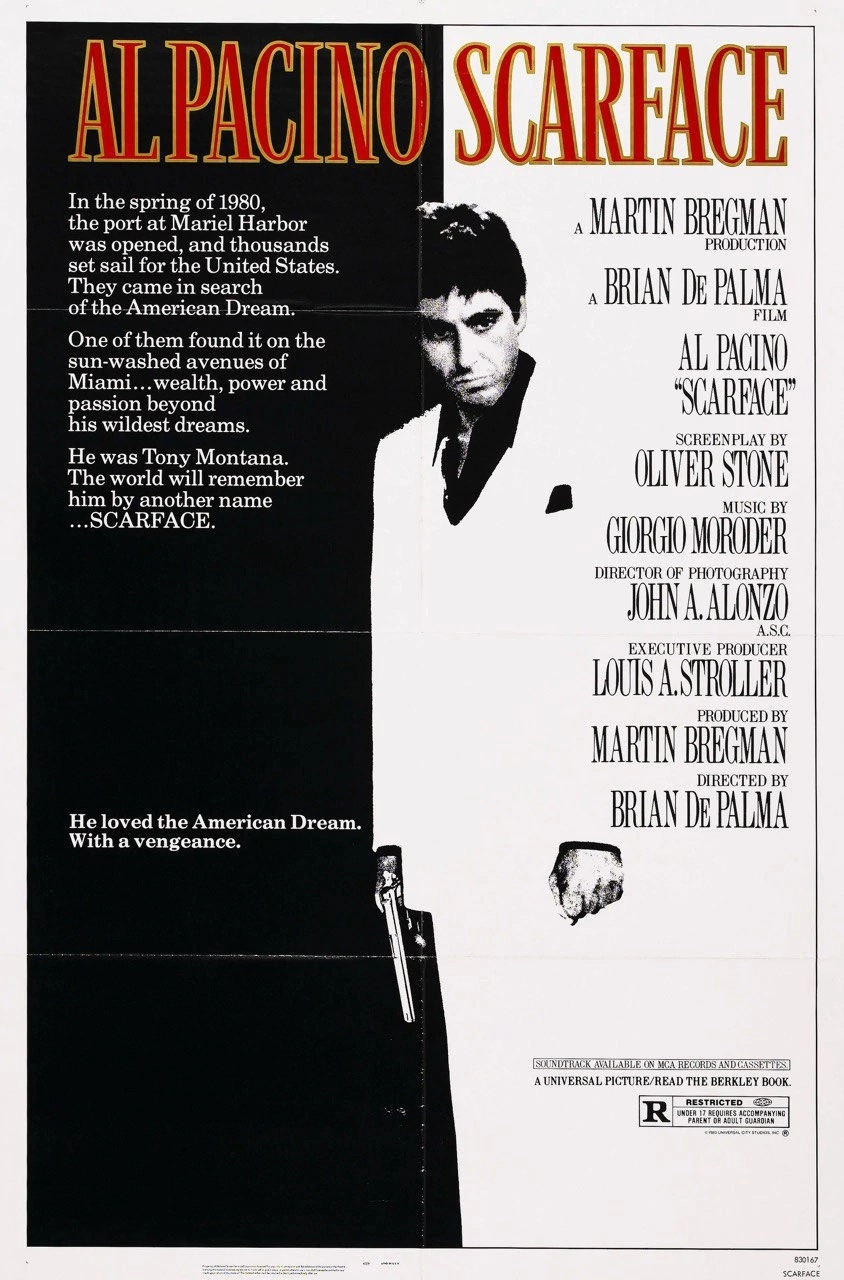 Американский художественный фильм режиссёра Брайана Де Пальмы, ремейк фильма 1932-го года Говарда Хоукса с Полом Муни в главной роли.