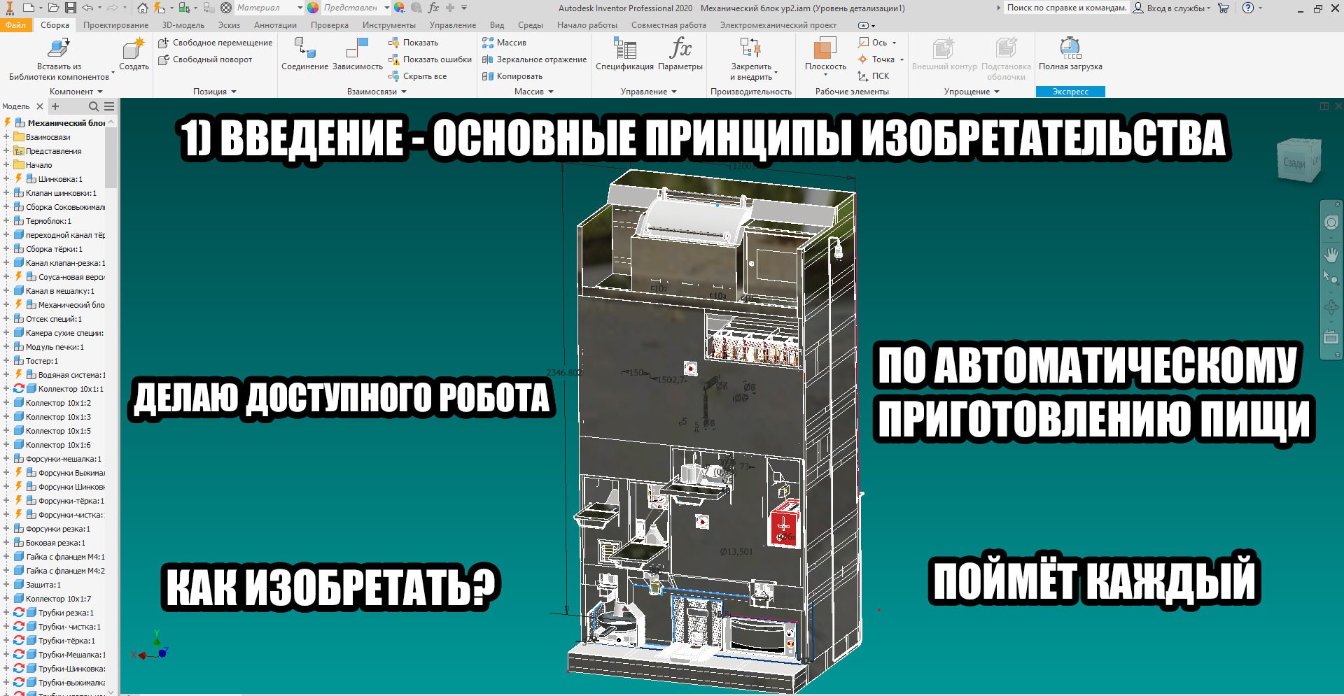 Всех приветствую. Начиная с 21 года, я занимался разработкой прототипа, которая позволила бы готовить пищу в автоматическом режиме: первое, второе, третье, и причем одновременно. Параллельно с этим, мы очень подробно будем разбирать такое явление, как изобретательство на практике данного механизма. Дело в том, что сама тема, она довольно плохо освещена, и на мой взгляд, в этой теме есть куча подводных камней, о которых мало кто знает.