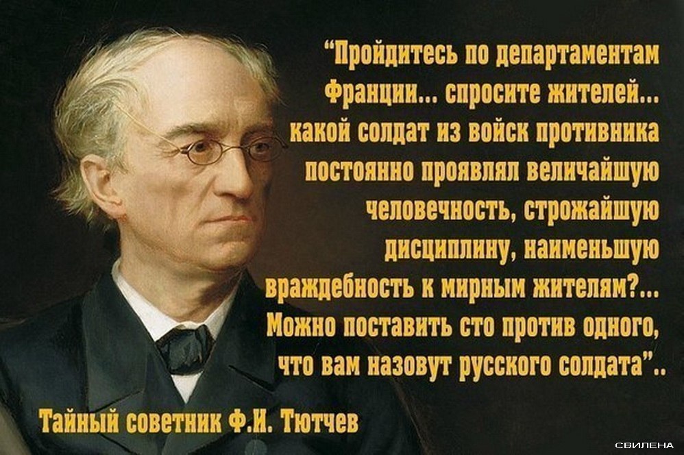 Откуда русофобия? А оттуда, что мы, нанося визиты ответной вежливости в европейские столицы с восемнадцатого века, не сжигали их к херам, и не вырезали мирное население в масштабах сотен тысяч и миллионов. Вот если бы мы каждый раз всего лишь делали то, в чем нас обвиняют, сейчас с нами некому было бы воевать. Дураков и самоубийц нет. И в этом случае, ежели в какой стране особо умный политик заикался бы, что, мол, неплохо бы с русскими повоевать, его бы его же население бодро и весело казнило бы. Образцово-показательно. Во избежание.