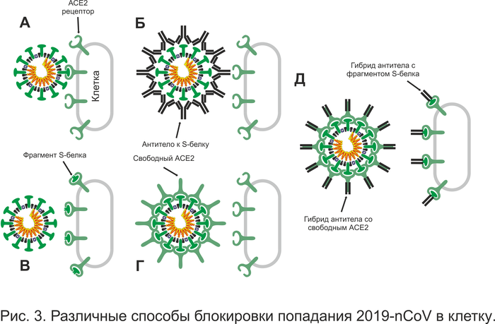1) Если мы не дадим 2019-nCoV попасть в клетку (Рис. 3А), его путешествие закончится. Как же можно это реализовать?