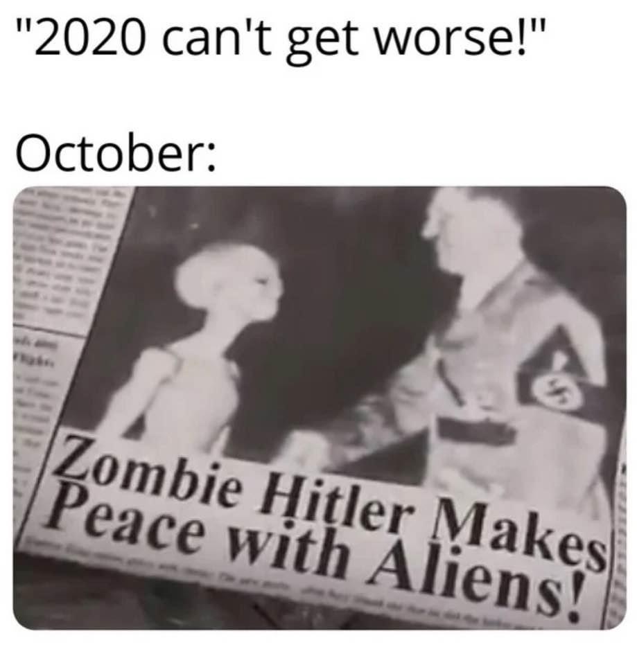 36 dieselman 2020 хуже уже не будет... 5 лет назад Октябрь:Зомби Гитлер заключил мир с Пришельцами! Картинка с текстом Перевод Газеты Адольф Гитлер 2020 Пришельцы Ещё 0