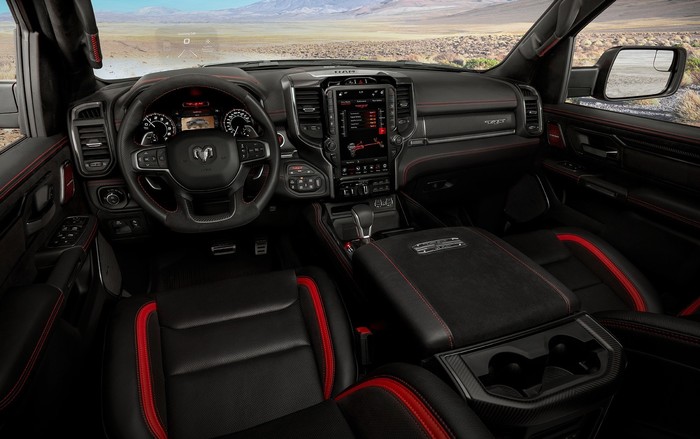 По интерьеру Ram как всегда остается верен себе, предлагая покупателю богатый вид материалов и безупречную изоляцию от внешних звуков. Некоторые опции включают в себя обивку кожей и цифровое зеркало заднего вида, удобный дисплей и пара лопастных переключателей на руле. В остальном, это будет все тот же RAM 1500.