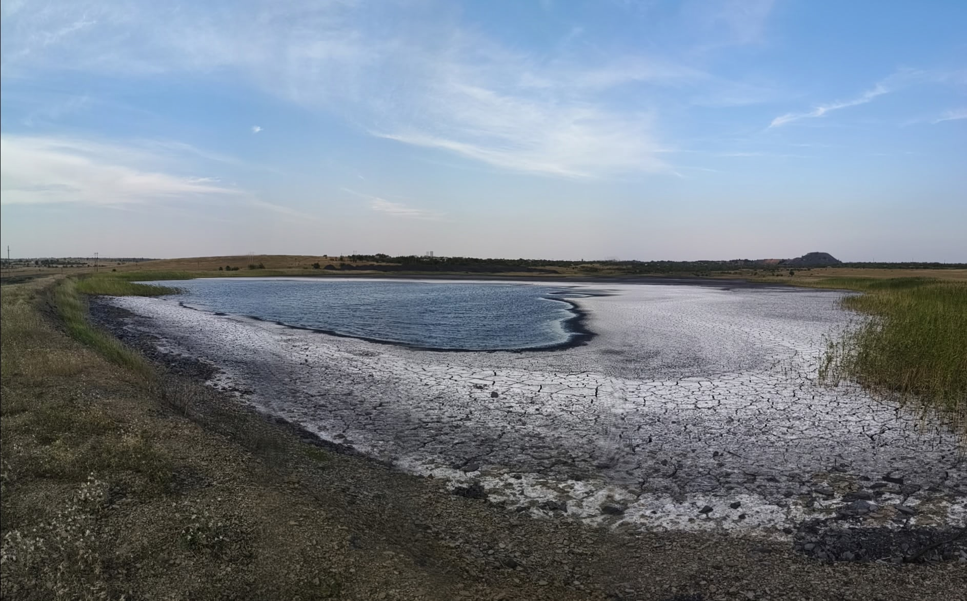 Второе фото конец июля 2025. Место тоже. Вода осталась только в виде двух очень больших, но по сути лужах.