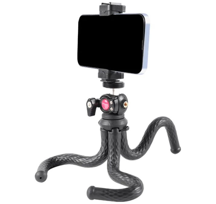 Универсальный трипод для телефона с гибкими ножками. Легко крепится на столбах, перилах, деревьях. Идеален для блогеров, путешествий и съёмок. Совместим с камерами и смартфонами.