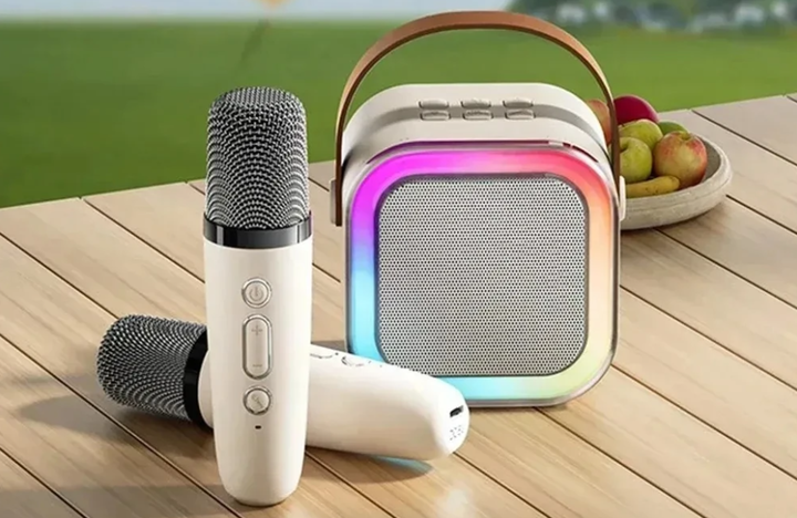 Колонка с караоке-режимом и беспроводным микрофоном. Мощный звук, встроенный аккумулятор и световая подсветка. Отличный выбор для вечеринок, дачи и выездов. Удобная ручка для переноски.