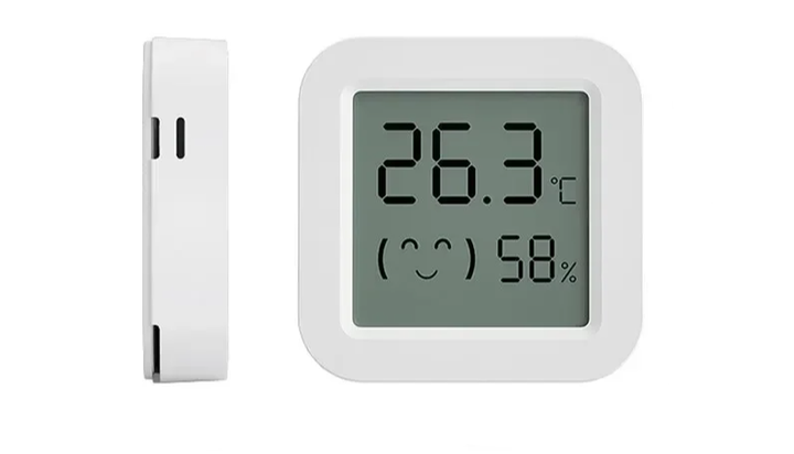 Подключается к системе умного дома через Wi-Fi или Bluetooth. Отслеживает параметры воздуха, присылает уведомления и строит графики. Компактный, с экраном. Работает от батарейки до полугода.