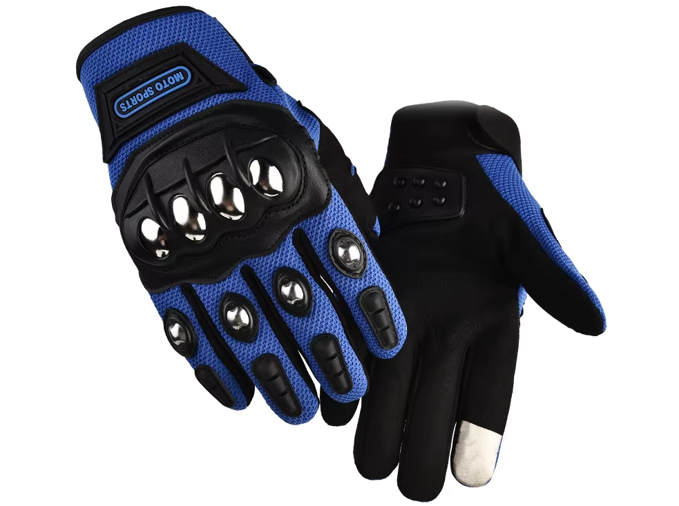 Прочные и удобные перчатки разработаны для надёжной защиты рук при активной работе или езде на мотоцикле. Основной материал — плотный полиэстер с добавлением искусственной кожи, что обеспечивает баланс между гибкостью и устойчивостью к износу. На костяшках расположены стальные накладки, защищающие пальцы от ударов, трения и случайных повреждений.