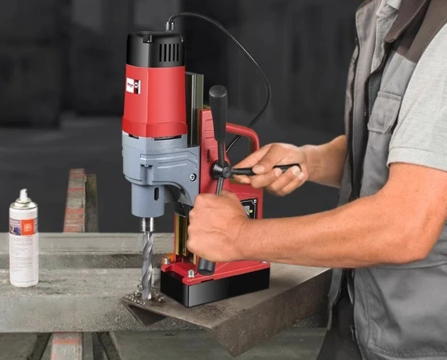 Малогабаритная сверлильная машина с магнитным основанием предназначена для точного сверления в металле в вертикальном и горизонтальном положении. Надёжный электродвигатель и магнитная платформа обеспечивают стабильность даже на вертикальных поверхностях. Удобный рычаг подачи и защита от перегрева делают работу безопасной. Подходит для мастерских и строительных площадок. Компактный, но мощный помощник в металлообработке.