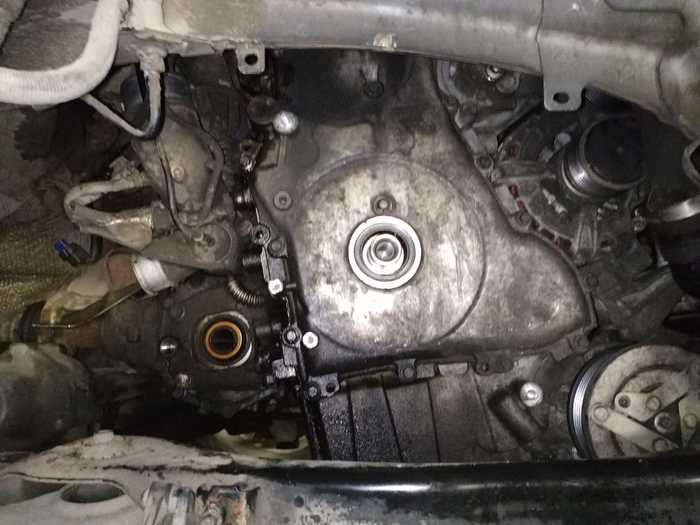 материмся и заряжаем коллектор с турбой на свое место. тяжелый зараза ( работы производятся из под правого крыла при снятой амортизаторной стойке)