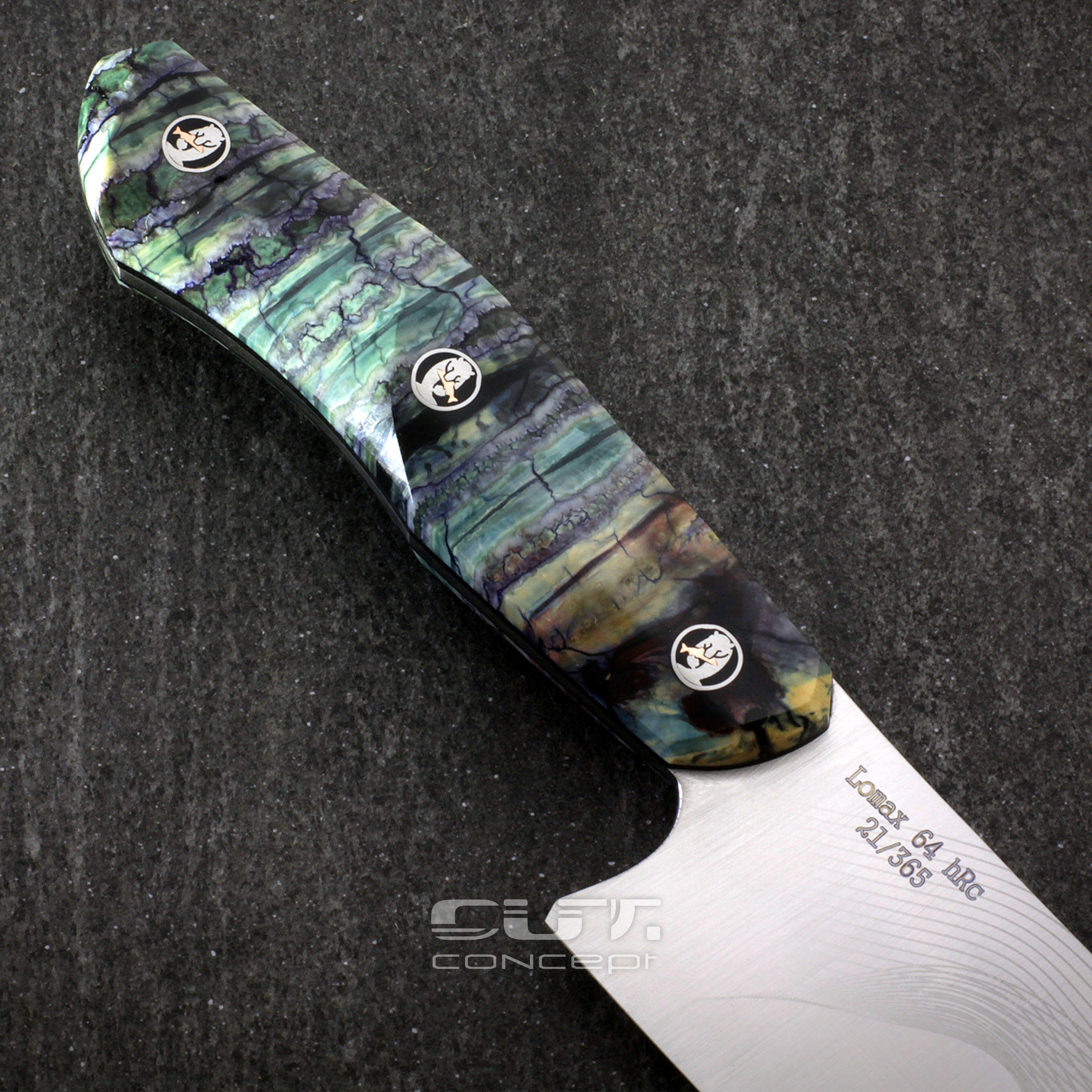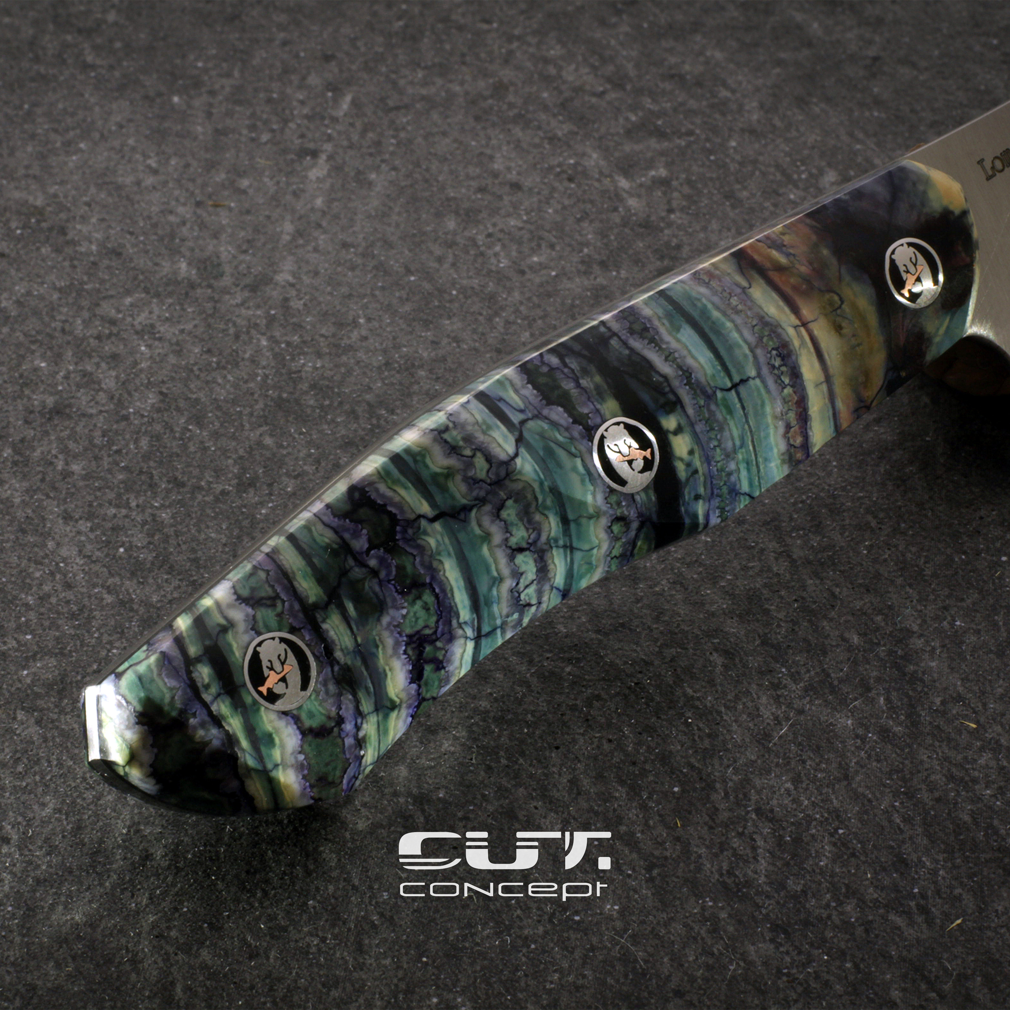 Рукоять выполнена из стабилизированного зуба мамонта.