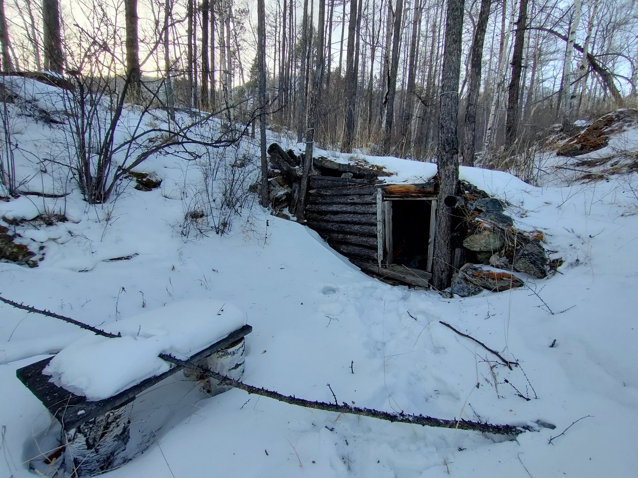 Я попытался найти спрятанные ключи от основного зимовья. Безуспешно.