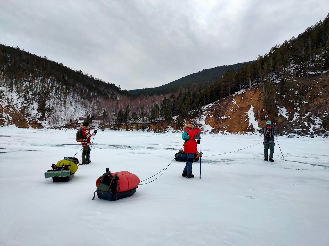 Солнце неизбежно поднялось над горизонтом и нам вновь пора в дорогу. Лёд на выходе из Бугульдейки был почти сразу чистым и пригодным для конькового движения.