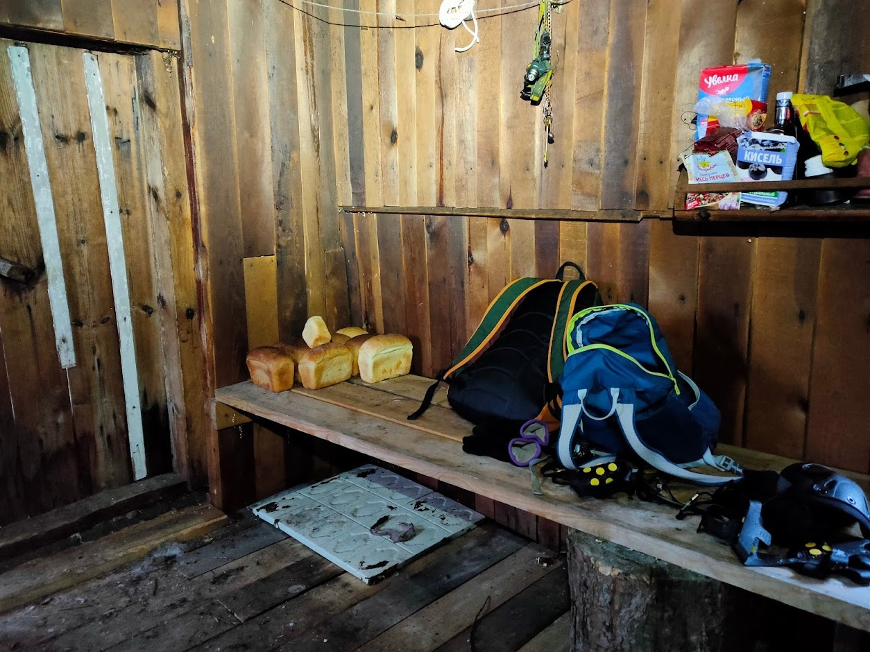 День провели в лежачем положении: просмотрели фотографии, покушали, сделали пару выходов на улицу и вновь легли в спальниках в избе.