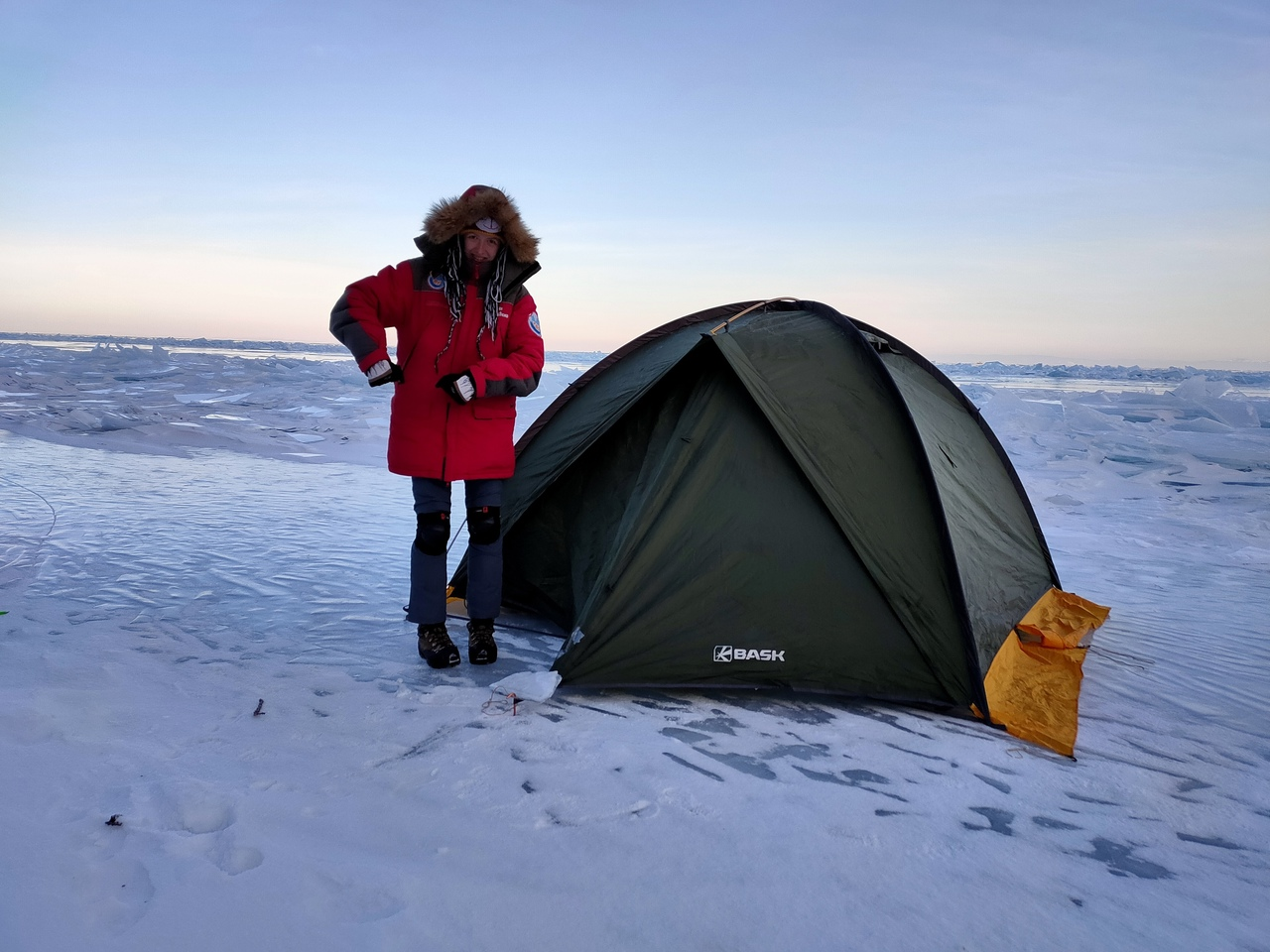 Я нашёл для нас отличную землянку для ночлега, но почему-то мы поставили лагерь на льду. Обидно.