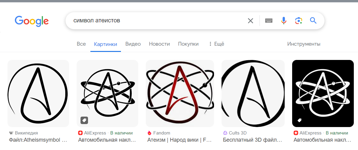 Хотел просто поправить что на картинке символ агностицизма. А это немного другое. Символ атеизма вот такой.