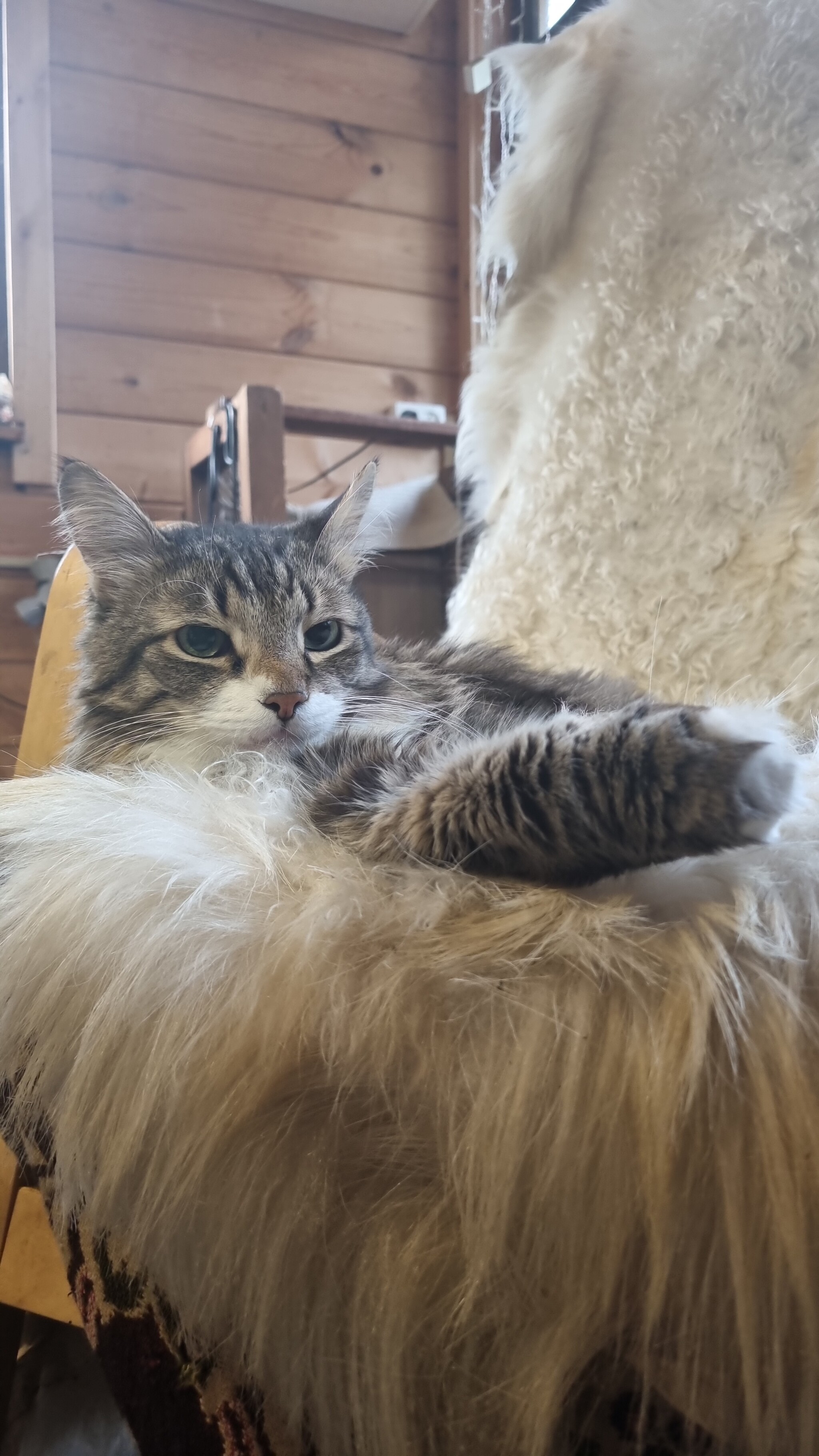 У нас рыжий подвальный, а этот от дворовой кошки. Породистые красивые, но да, с ними очень много мороки.