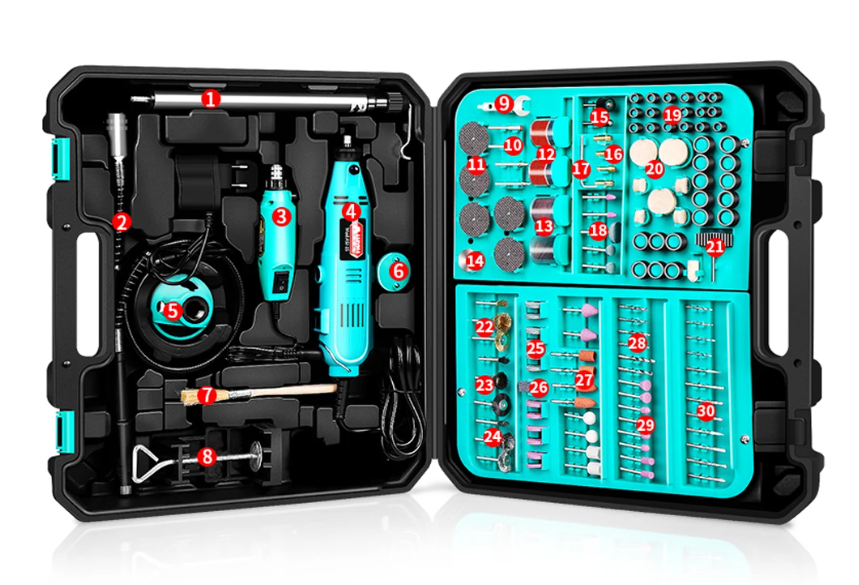 Набор из двух мини-дрелей FOCSE предназначен для выполнения мелких сверлильных работ. Он удобен для моделирования, создания прототипов и других точных задач.