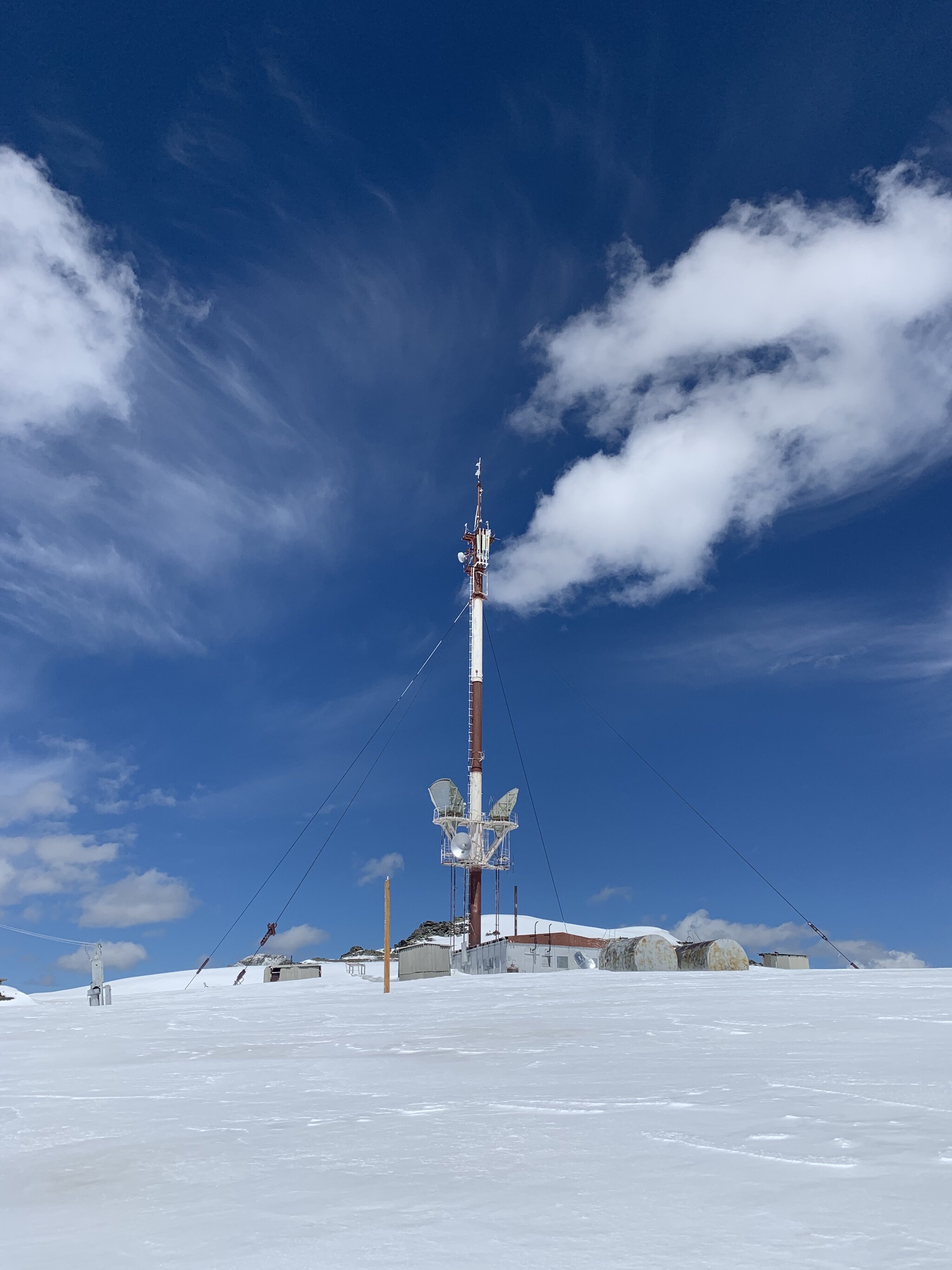 Мы добрались до первой смотровой и увидели снег. Холод стоял жуткий — ветер пробирал насквозь, руки замерзли до боли. Мы видели, что ретранслятор совсем рядом — если идти к нему не по дороге, а напрямую.