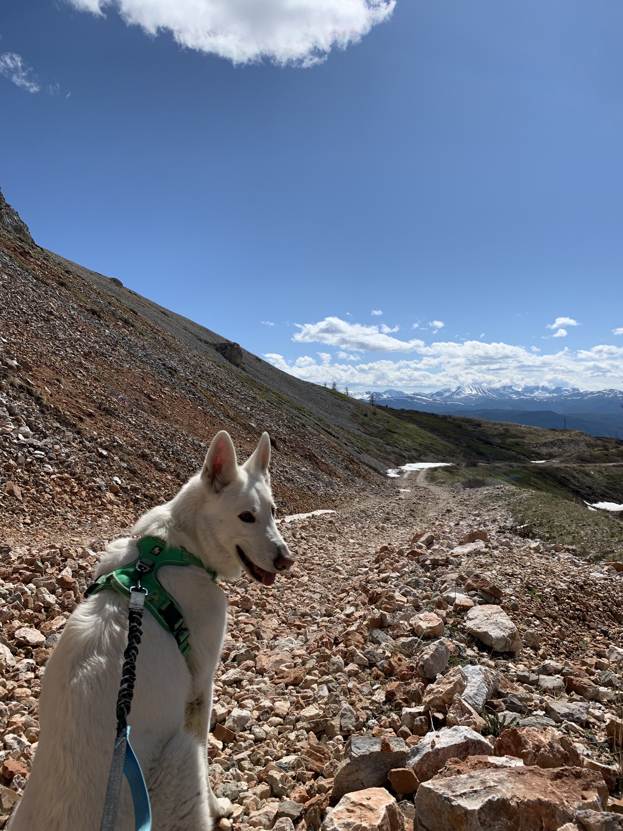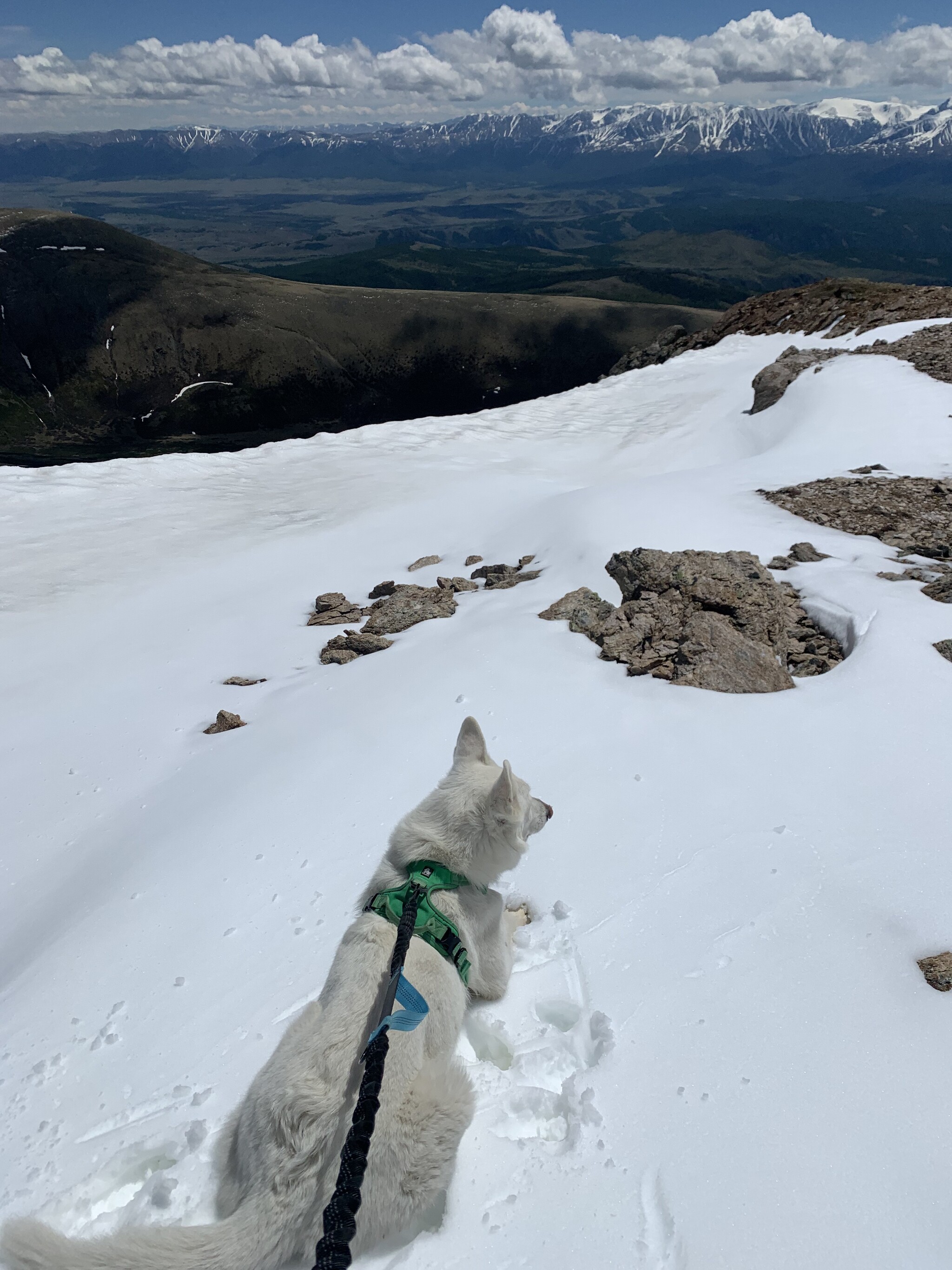 Вдобавок ко всему поднялся жуткий боковой ветер. Он буквально сбивал с ног, стоило только расслабиться — сносил в сторону так, что приходилось делать несколько шагов, чтобы не упасть. Упираться палками в землю, слегка группироваться и ждать, когда порыв ослабнет. У нашей собаки сдувало в сторону шерсть и даже уши))