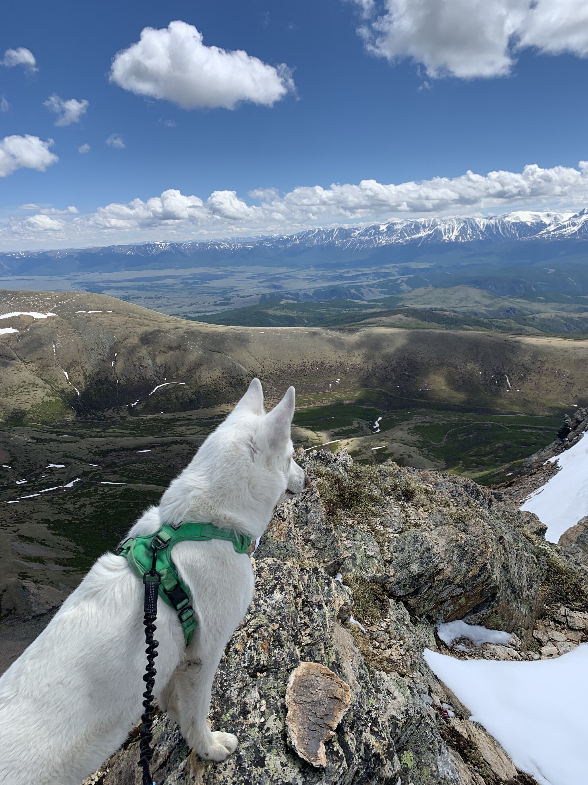 Во-первых, высота этой горы — 3038 метров. С вершины на 360° открывается потрясающая панорама заснеженных пиков Северо-Чуйского хребта. В ясную погоду можно даже увидеть знаменитую Белуху. Внизу, у подножия снежного хребта, виднеется изумрудная долина с извивающейся лентой реки Чуи. В общем, виды — огонь, это вообще вне всяких сомнений.