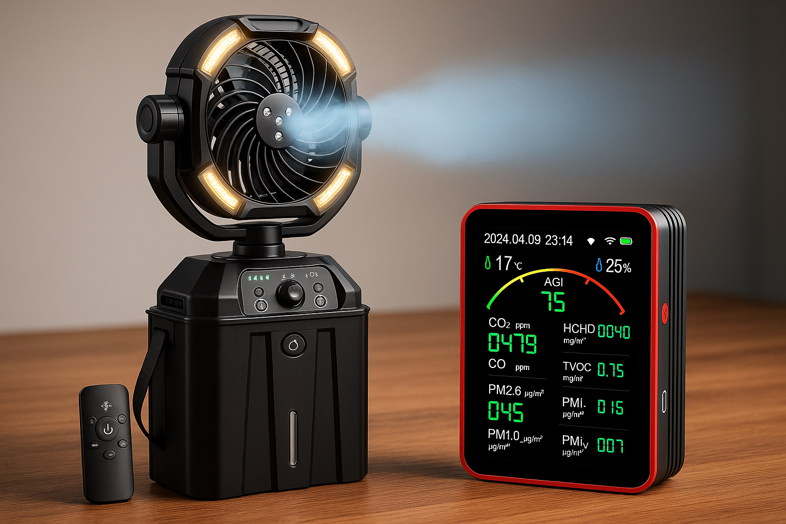 Этот мощный напольный вентилятор объединяет охлаждение с функцией распыления воды и работает до 20 часов от аккумулятора. Идеален для дачи, пикников, мастерских или террас. Автоматическое вращение и несколько скоростей обеспечивают комфортную циркуляцию воздуха. Оснащён 7-литровым баком и USB-зарядкой для устройств. Лето станет заметно прохладнее.