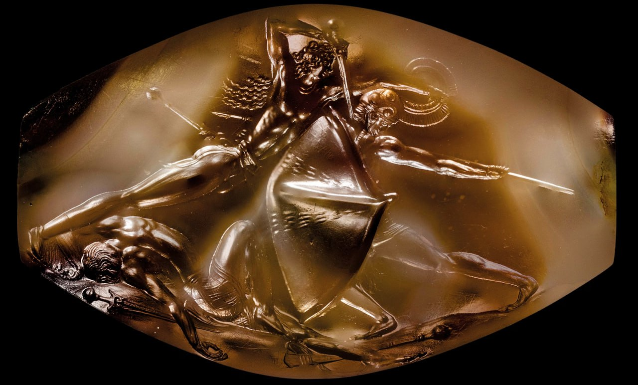Удивительная миниатюрная гемма с боевой сценой.