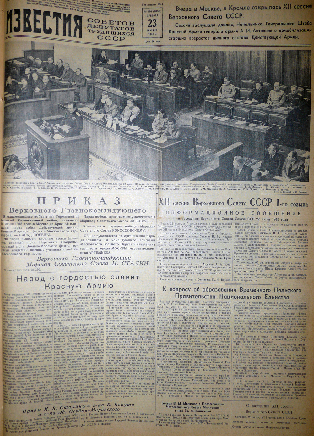 9 AlexeyMaestro 23 июня 1945 года в газете "Известия" 10 лет назад [моё] Длиннопост Газета Известия Победа Великая Отечественная война История СССР Россия