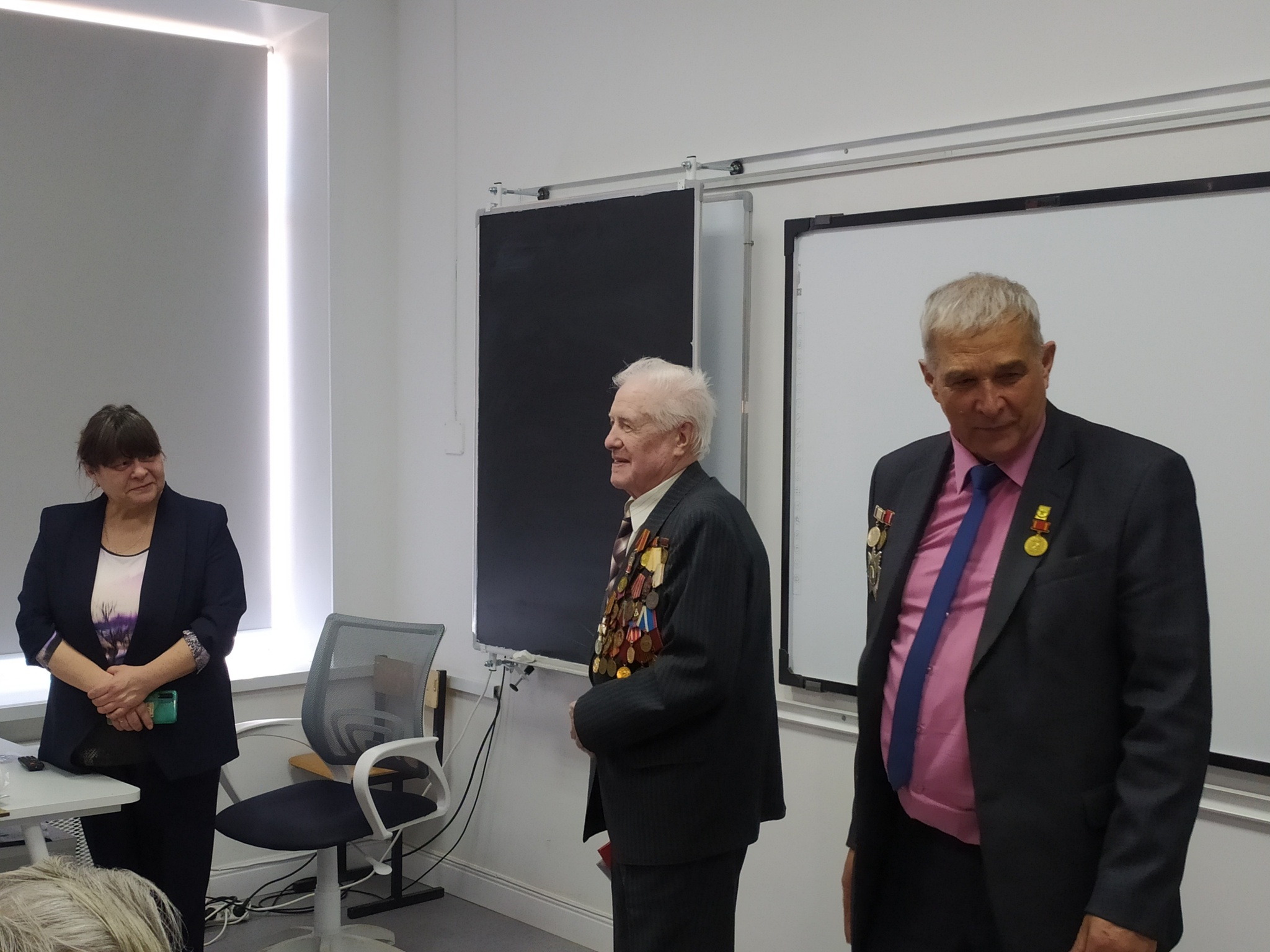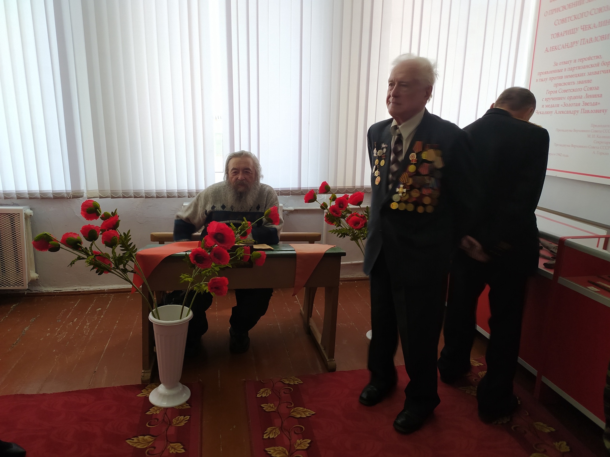 Затем, в школе им. А.П. Чекалина прошел Урок мужества, основной частью которого стала презентация и рассказ о жизни Саши нашего экскурсовода Киры Александровны.