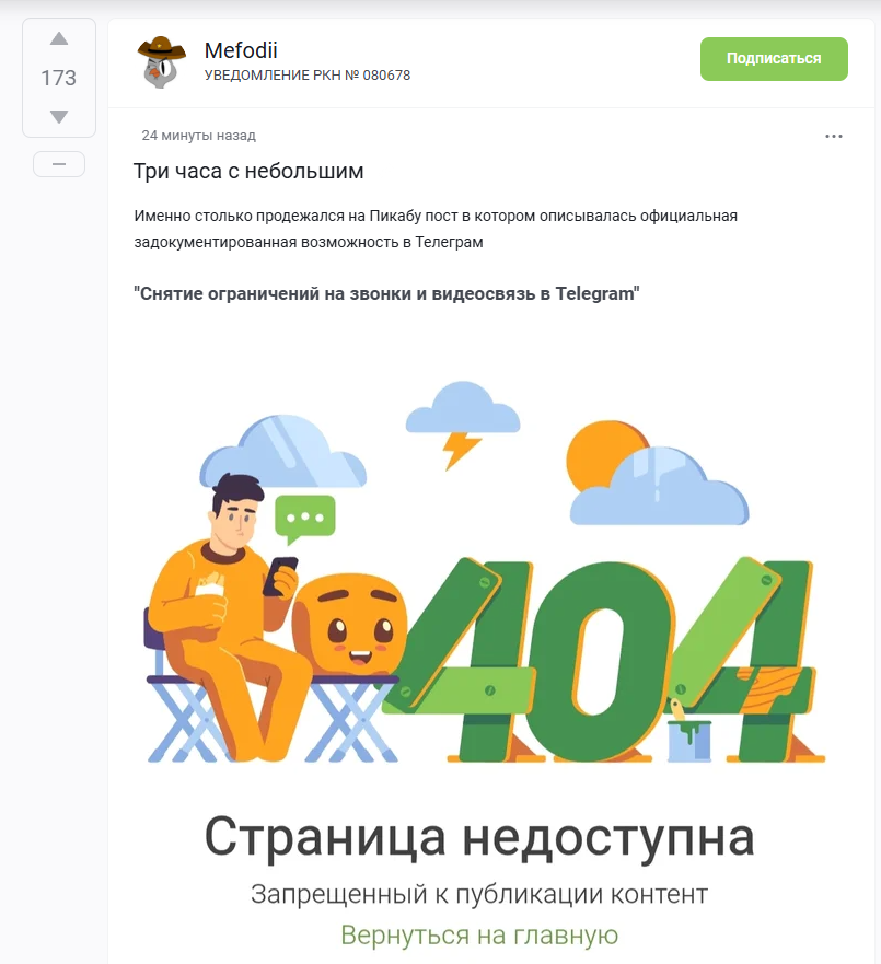 Есть официальный ответ medalofhonor Модерация на Пикабу 24 минуты 5 месяцев назад На изображении видно что админ пидор Именно столько продержался на Пикабу пост в котором описывалось то что на Пикабу сносят посты про телеграмм которые ничего не нарушают Модеры, вы там ахуели? Посты на Пикабу Роскомнадзор-тян Мат Ещё 0