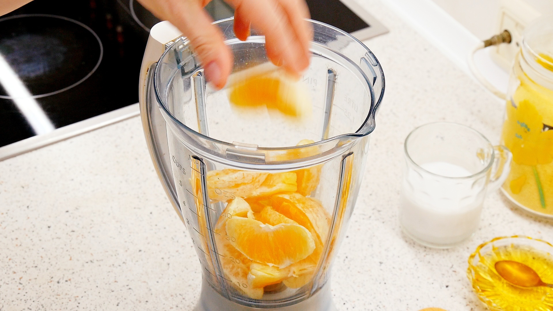 Один апельсин тоже очищаем от кожуры, делим на дольки.