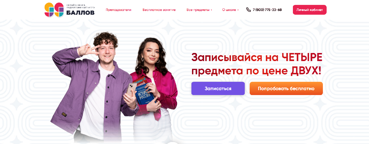 99 Баллов — школа гарантирует высокие баллы по ЕГЭ за счет уникальной подготовки на их сайте