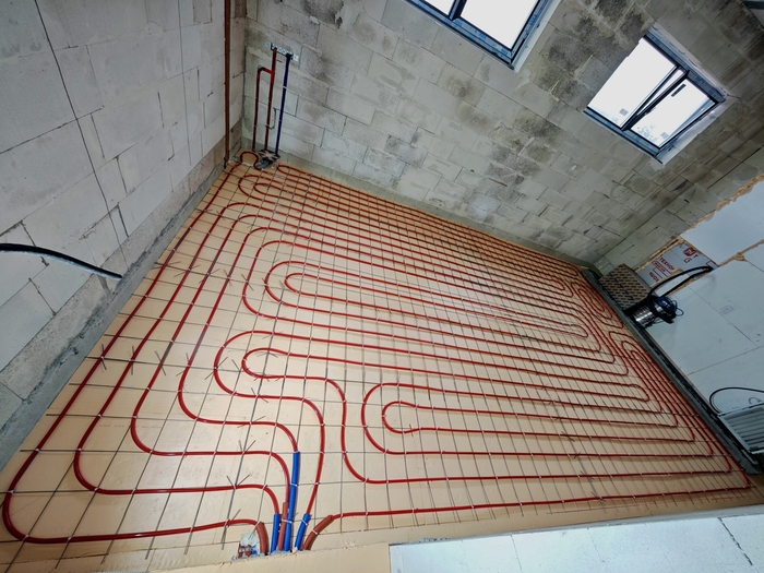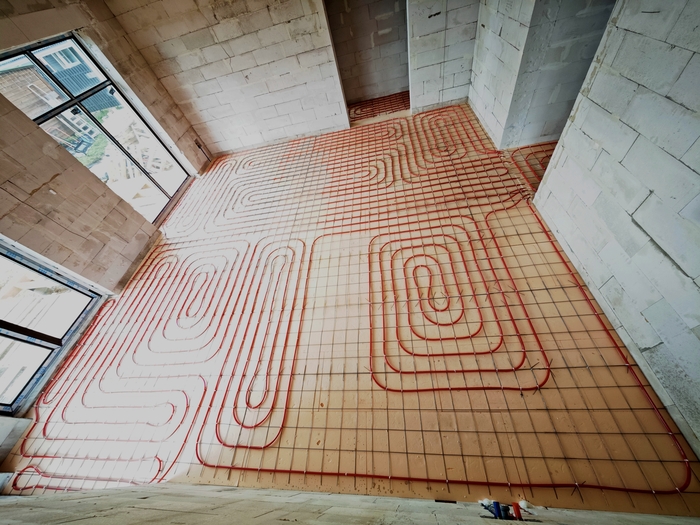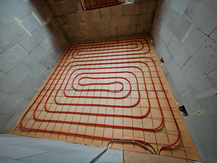 Выполнена разводка труб канализации, водоснабжения и теплого пола в одноэтажном доме с площадью 170кв.м.