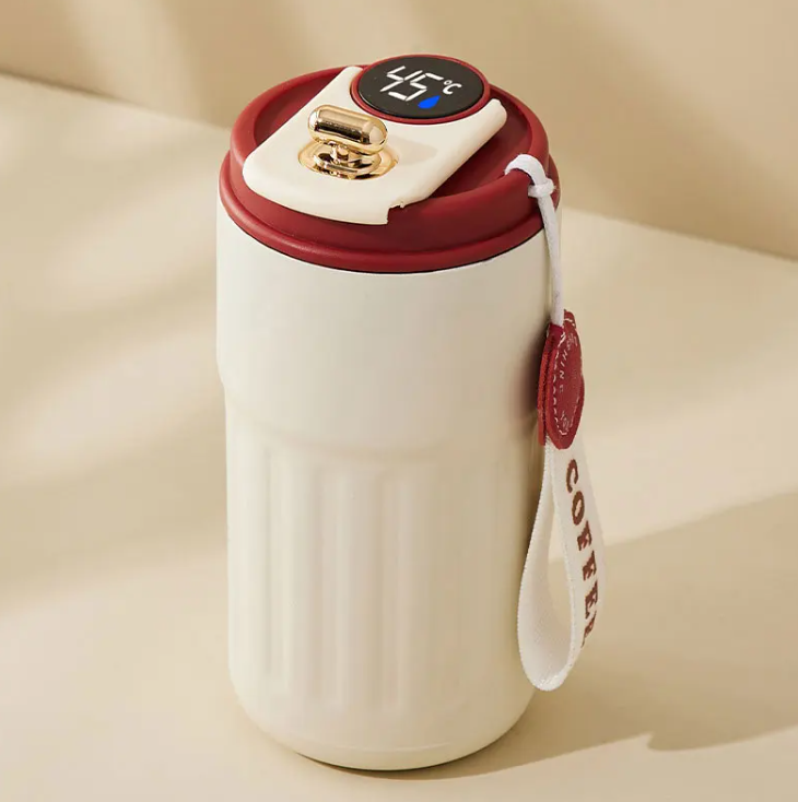 Современная термочашка с цифровым индикатором температуры, которая показывает текущую температуру напитка на сенсорной крышке. Высококачественная сталь 316 сохраняет тепло и вкус напитков длительное время. Идеальна для кофе, чая и прохладной воды в дороге. Удобна в использовании и выглядит стильно.