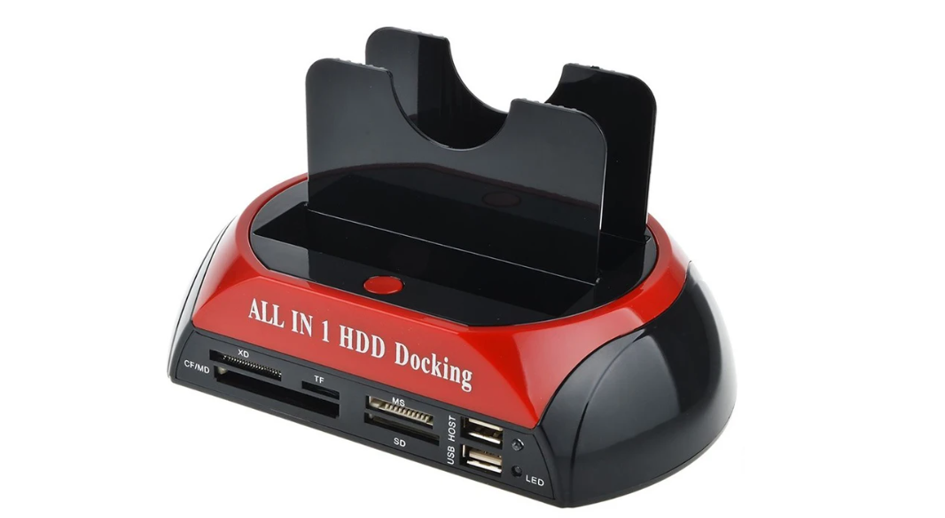 Функциональное устройство для подключения SATA/IDE жёстких дисков 2,5 и 3,5 дюйма. Оснащено слотами для различных карт памяти и USB-портами. Упрощает работу с данными без необходимости установки в ПК. Поддерживает быструю передачу файлов.