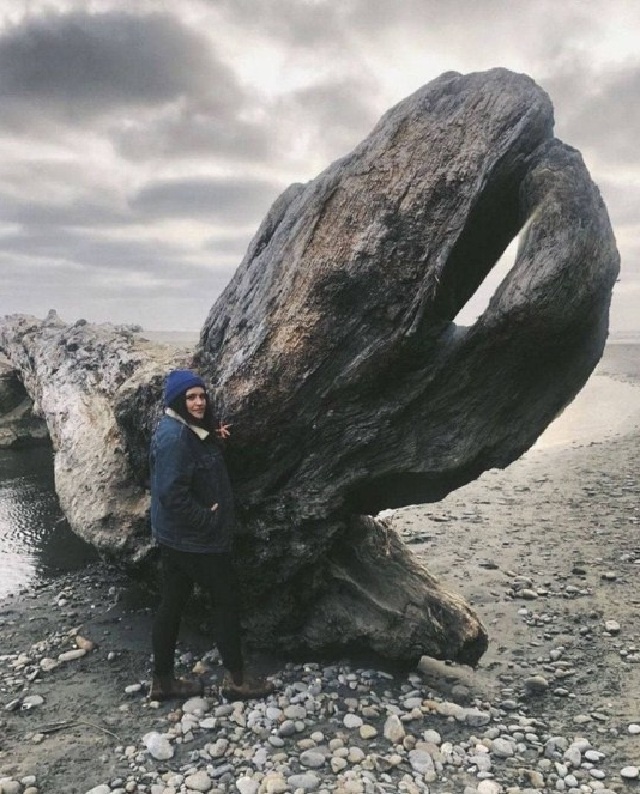 Гигантское дерево, вынесенное океаном на берег