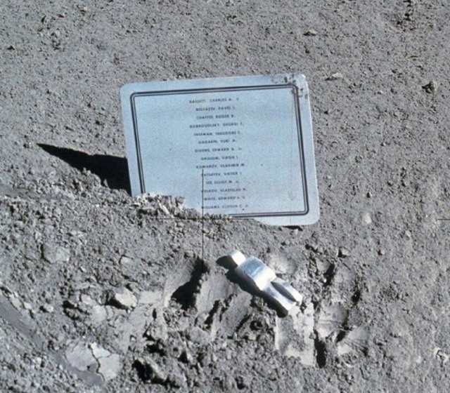 Мемориал погибшим космонавтам, установленный на Луне