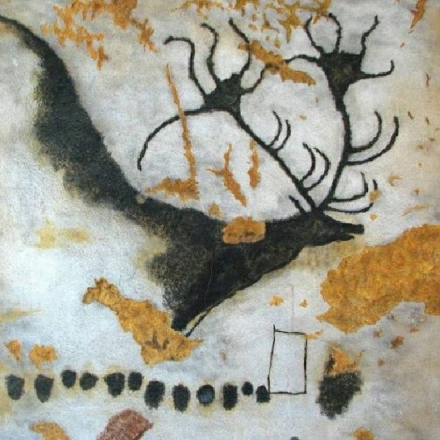 Наскальное изображение вымершего большерогого оленя возрастом 17000 лет, найденное в пещере Ласко во Франции