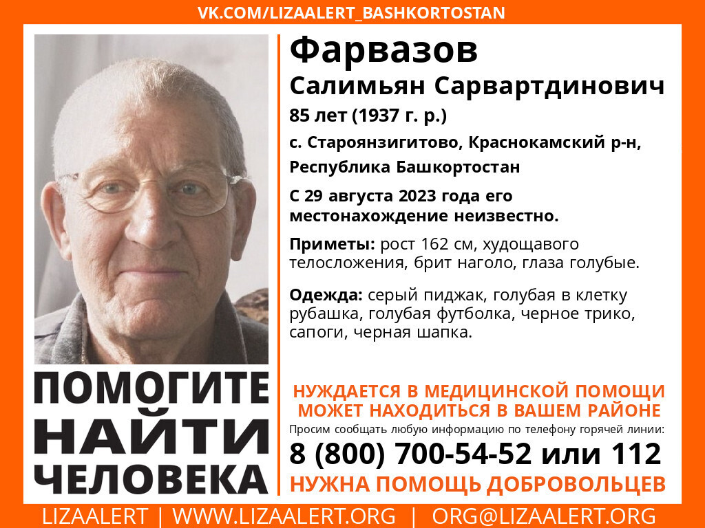 29.08.23 пропал Фарвазов Салимьян Сарвартдинович с.Староянзигитово Респ. Башкортостан