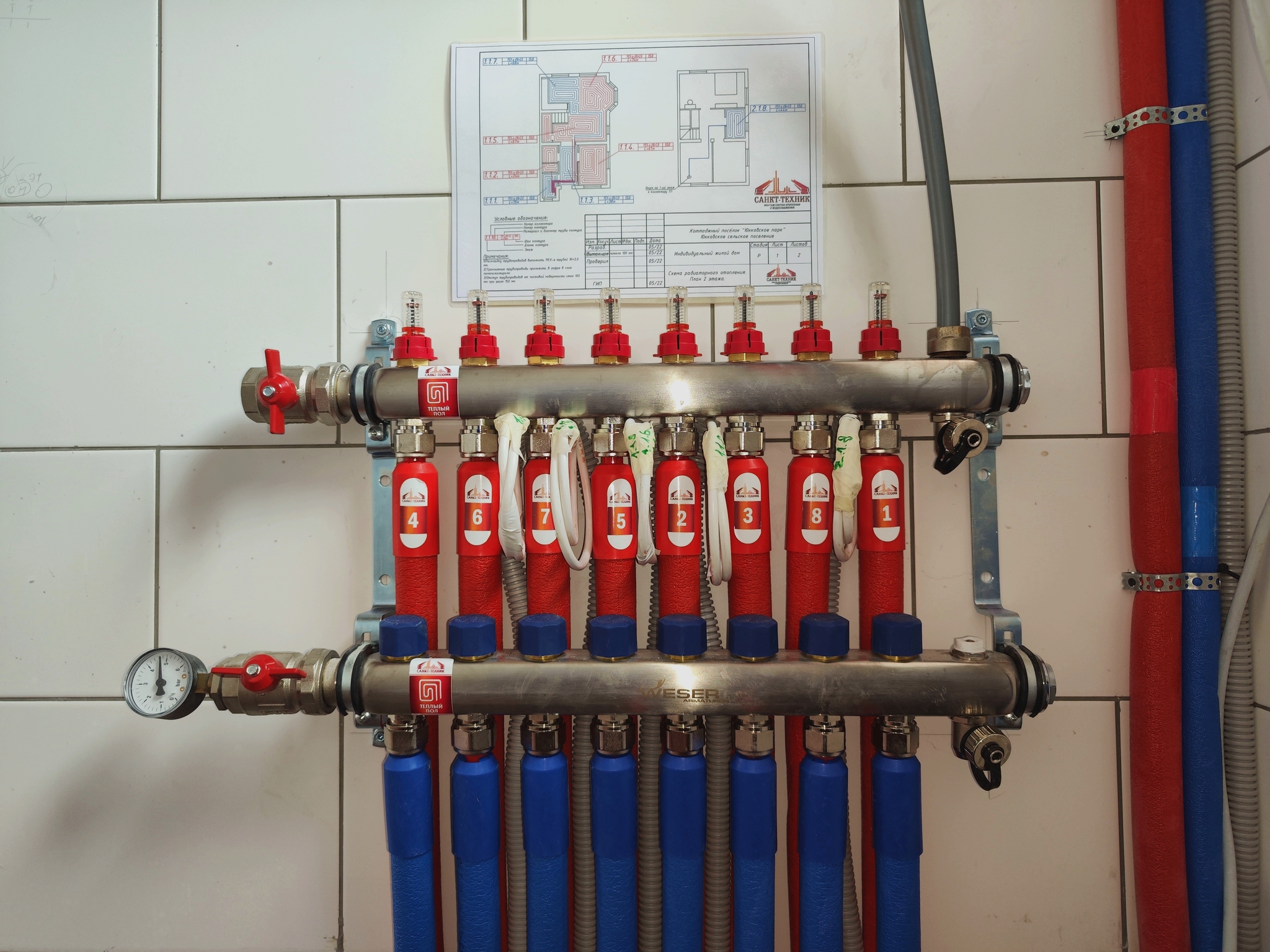 Это первый, но не последний объект, где инженерный материал полностью собран на достаточно качественном китайском материале - #Valtec. Они очень давно на нашем рынке и неплохо себя зарекомендовали, хотя процент брака, по моему субъективному мнению, у них чуть больше, чем у европейцев. Лет 10 назад у меня пара пресс-соединителей потекли. У европейцев ТМ такого не было ни разу. Надеюсь, за это время в качестве они подросли. Во всяком случае, коллекторы на воду и радиаторы выглядят внушительно и весят немало, что указывает на хорошую толщину стенки, в отличии от дешёвого Китая. Здесь всё смонтировано и давно стоит под давлением. Проблем не наблюдаем.