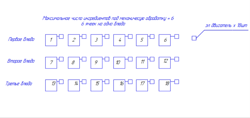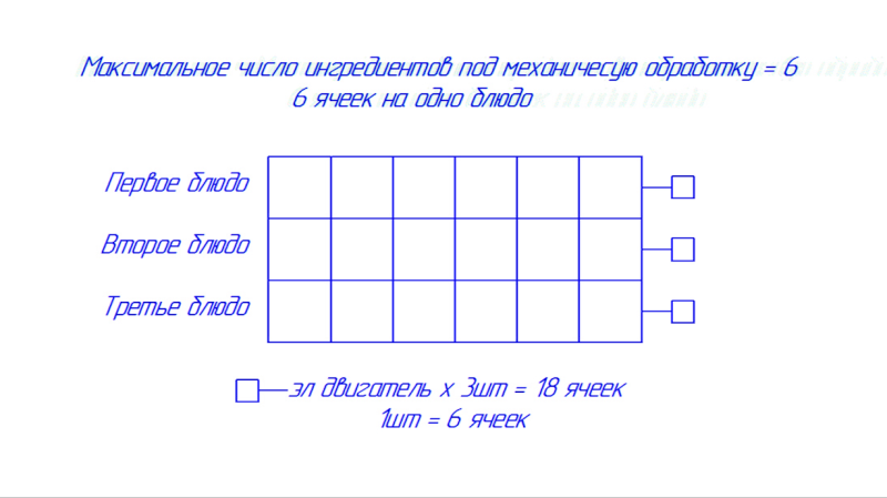 Общий принцип работы блока хранения и распределения заключается в следующем: человек выбирает для себя нужный рецепт, далее механизм предлагает, какой продукт в какую ячейку положить или человек назначает эти ячейки сам, если у него собственный рецепт. Далее распределив все продукты по ячейкам, человек забивает таймер. К примеру, человек заложил продукты вечером, а нужно, чтобы приготовилось завтра ближе к вечеру, то есть тогда, когда он придет после работы. То есть заложил, включил, таймер пошел, человек пришел – готовая еда.